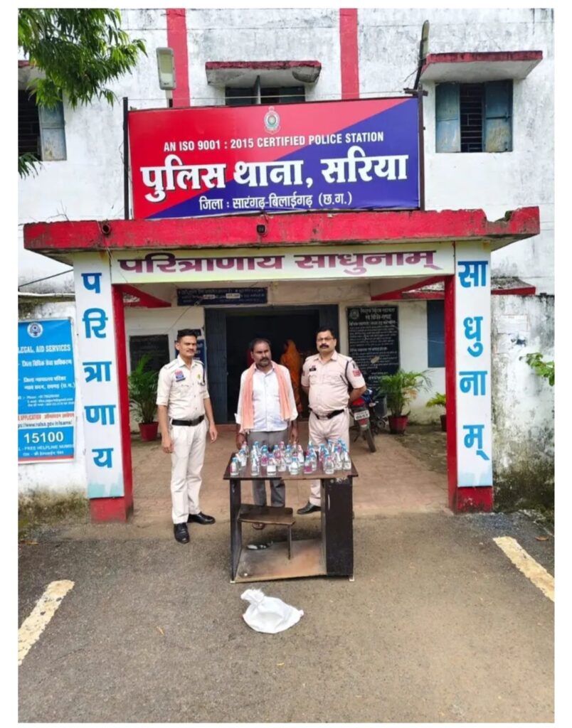 श्रीमान पुलिस अधीक्षक श्री आंजनेय वार्ष्णेय, अति0 पुलिस अधीक्षक श्रीमती निमीषा पाण्डेय एवं डीएसपी श्री अविनाश मिश्रा के द्वारा अवैध शराब बिक्री पर रोकथाम हेतु लगातार निर्देशित किये जाने पर थाना प्रभारी सरिया प्रमोद यादव के कुशल मार्ग दर्शन में थाना सरिया के पुलिस स्टाफ के द्वारा अवैध शराब बिक्री करने वाले आरोपी के विरुद्ध कार्यवाही कर आरोपी को गिरफ्तार करने में सफलता प्राप्त हुई।