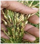 - पेनिकल माइट (लाल मकड़ी) :- धान में बाली निकलने से लेकर मिल्किंग अवस्था में रस चूसता है | इसके प्रकोप से बालियों में दाने नही बनते है।