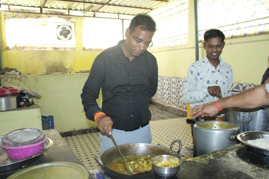 रसोई में जाकर कलेक्टर ने बर्तन को चेक कर जांचा भोजन की क्वालिटी
