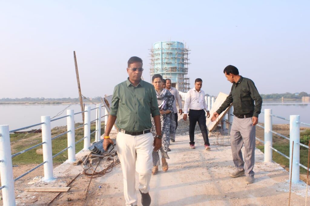 सारंगढ़ बिलाईगढ़, 3 नवंबर 2025/कलेक्टर डाॅ संजय कन्नौजे ने महत्वाकांक्षी जल जीवन मिशन अंतर्गत घोठला हरदी समूह जल प्रदाय योजना के निर्माण कार्यों की प्रगति का अवलोकन करने सारंगढ़ ब्लाॅक के ग्राम हरदी, मधुबन और धुता गए। इस दौरान उन्होंने हरदी में निर्माणाधीन एमबी पानी टंकी के ठेकेदार को श्रमिकों की संख्या बढ़ाकर कार्य शीघ्र पूर्ण करने के निर्देश दिए। इसी प्रकार मधुबन के वाटर फिल्टर प्लांट और एमबी पानी टंकी के निर्माण कार्य का अवलोकन कर कलेक्टर ने वहां फ्लोर, प्लास्टर, वायरिंग आदि को अलग-अलग श्रमिकों को बांटकर करने के निर्देश ताकि कार्य जल्दी कार्य पूर्ण हों। कलेक्टर ने ग्राम धुता के पास महानदी किनारे निर्माणाधीन इंटेकवेल निर्माण का निरीक्षण किया और शीघ्र निर्माण पूर्ण करने के निर्देश दिए। उल्लेखनीय है कि घोठला हरदी समूह जल प्रदाय योजना अंतर्गत हरदी, मधुबन में एमबी पानी टंकी का निर्माण हो रहा है। इस एमबी पानी टंकी से 17 गांवों में बिना बिजली के पानी सप्लाई होगा। साथ ही घोठला हरदी मार्ग से महानदी पानी का पाइप रूट सारंगढ़ तक बिछ गया है, जिससे वह सारंगढ़ में भी पानी सप्लाई होगा। इस दौरे में डिप्टी कलेक्टर शिक्षा शर्मा, लोक स्वास्थ्य यांत्रिकी के कार्यपालन अभियंता रमाशंकर कश्यप, एसडीओ बी के खरे उपस्थित थे।
