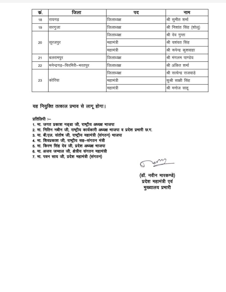 सूची के माध्यम से संगठन को और मजबूत करने के उद्देश्य से नए पदाधिकारियों को जिम्मेदारी सौंपी गई है
