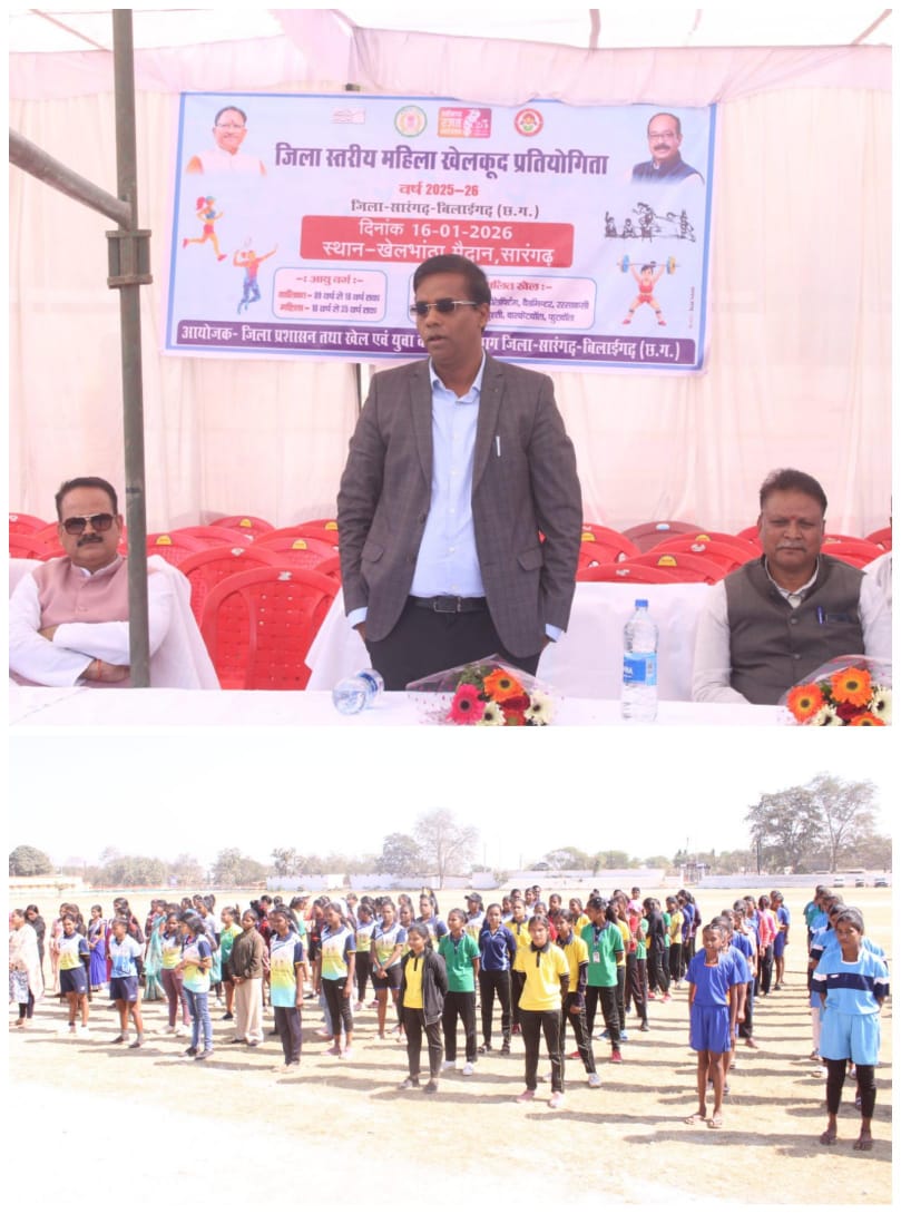 सारंगढ़–बिलाईगढ़, 16 जनवरी 2026/ जिला प्रशासन एवं खेल एवं युवा कल्याण विभाग के संयुक्त तत्वावधान में जिला स्तरीय एक दिवसीय महिला खेलकूद प्रतियोगिता 2026 का आयोजन सारंगढ़ के खेलभाठा मैदान में उत्साहपूर्वक किया गया। कार्यक्रम का शुभारंभ छत्तीसगढ़ महतारी की प्रतिमा पर दीप प्रज्वलन एवं पुष्प अर्पण कर किया गया।